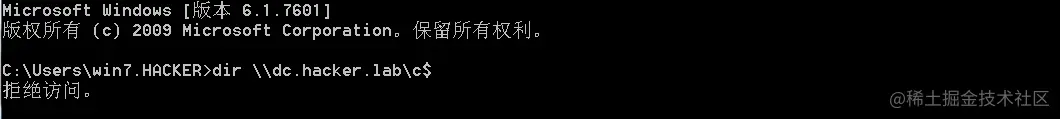 7、票据传递成功后我们就可以利用windows 7这台机器去连接域控了
