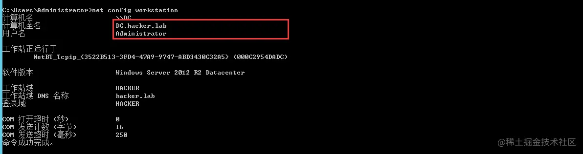 net config workstation #获取所处的域