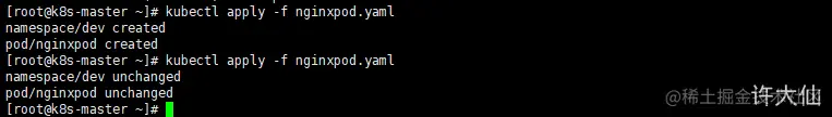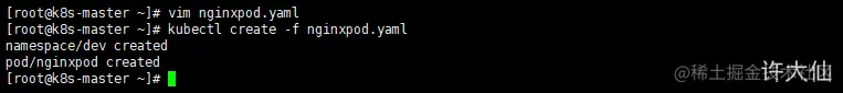 - 示例:在刚才创建的namespace下创建并运行一个Nginx的Pod