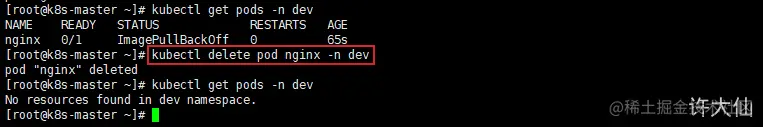 kubectl delete pod nginx -n dev
