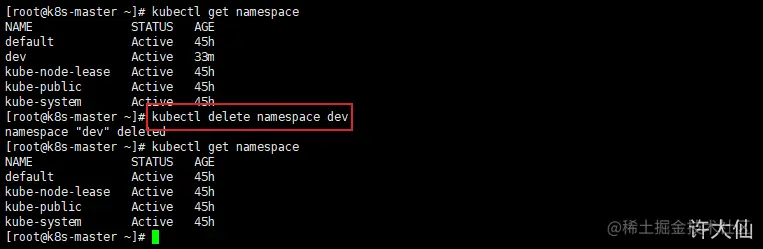 - 示例:删除指定的namespace