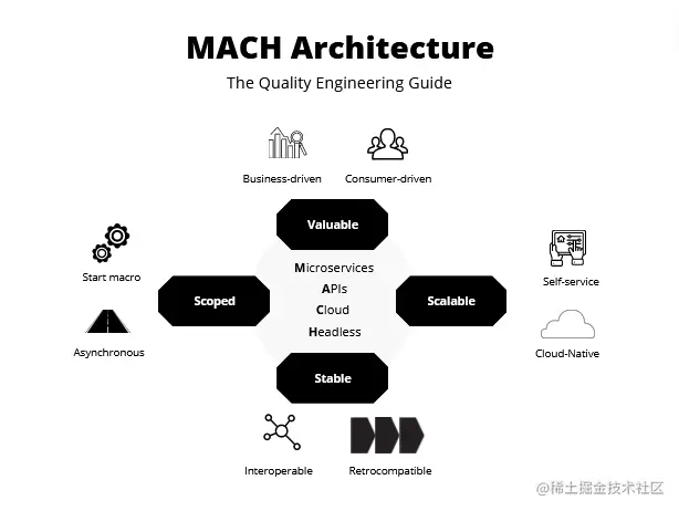 MACH是一个缩略语,提出了为数字组织构建服务的本质,尤其是那些在生态系统中需要大量集成的组织。此外它同样适用于业务和内部服务,如CI/CD平台,以提供自助化服务体验。