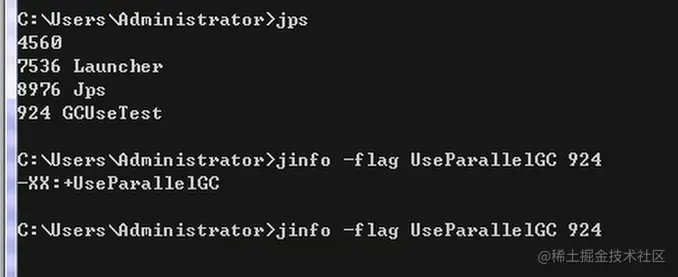 - 使用命令行指令:jinfo -flag 相关垃圾回收器参数 进程ID
