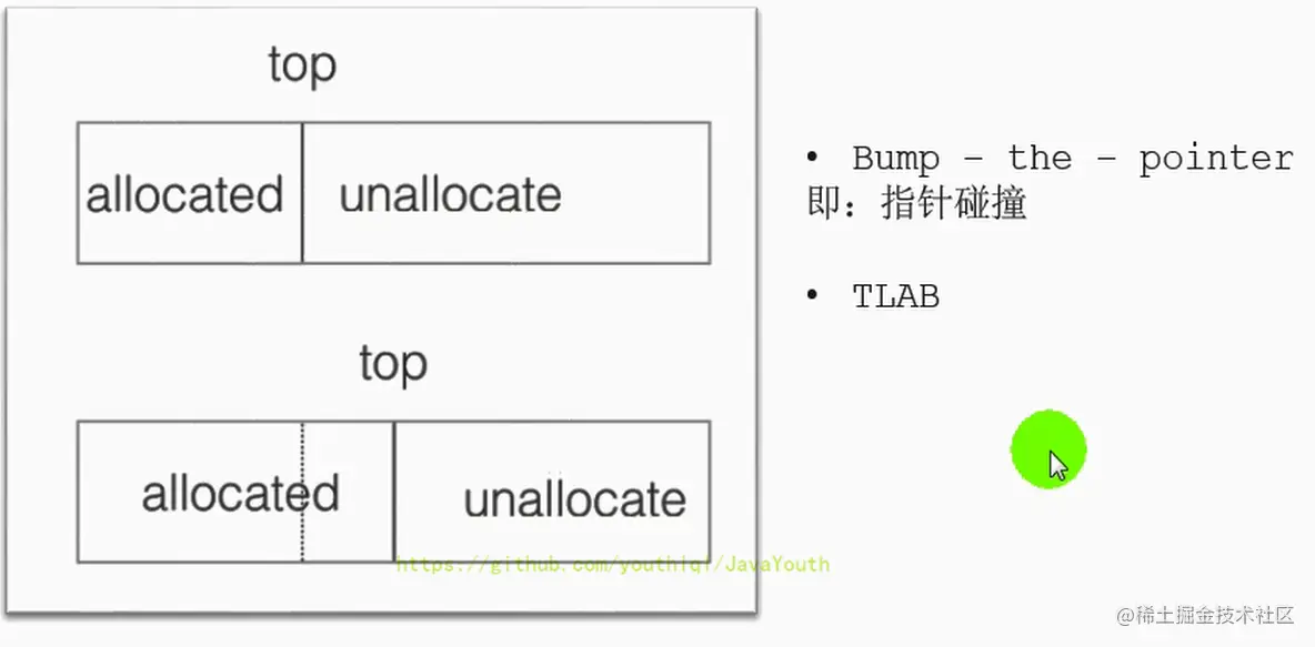 - 压缩式垃圾回收器会在回收完成后,对存活对象进行压缩整理,消除回收后的碎片。再分配对象空间使用指针碰撞