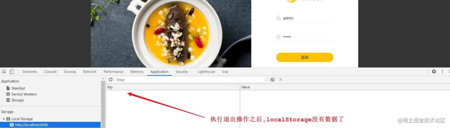 由前端代码,我们也可以看到,在用户登录成功之后,服务端会返回用户信息,而前端是将这些用户信息,存储在客户端的 localStorage 中了。