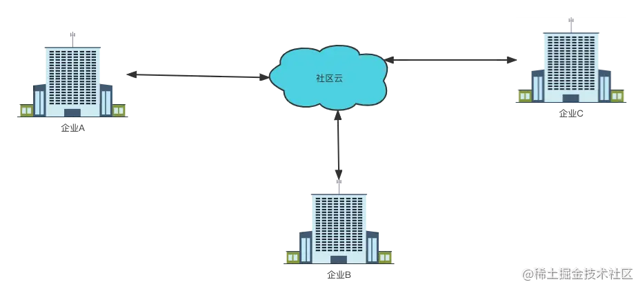 社区云是由几个具有类似关注点(eg:安全性、隐私性和合规性)的多个组织共享。