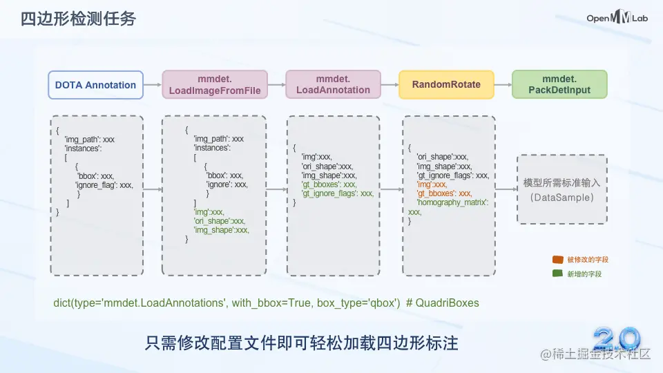 用户只需要将水平框模型中相关函数用统一的 API 替换,就能让重构后的模型同时支持水平框检测、旋转框检测、四边形框检测任务。
