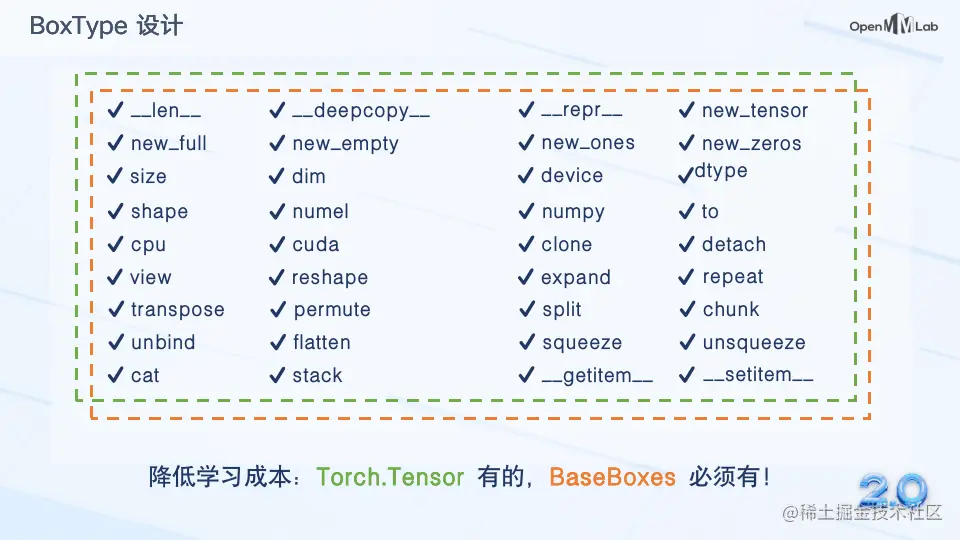 听完上面那些抽象的概念,可能有的同学心里已经打起退堂鼓了。且慢!BoxType 其实并没有你想的那么复杂。为了降低用户的使用门槛,BoxType 实例具备了大多数 Tensor 的特性。这意味着用户能够直接将 BoxType 实例当作普通 Tensor 进行操作,真正降低了用户的学习成本。