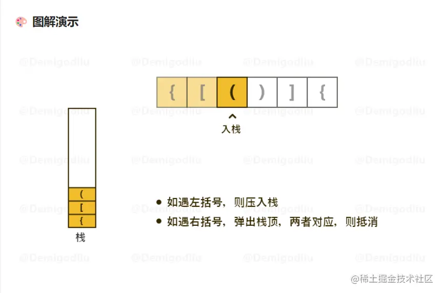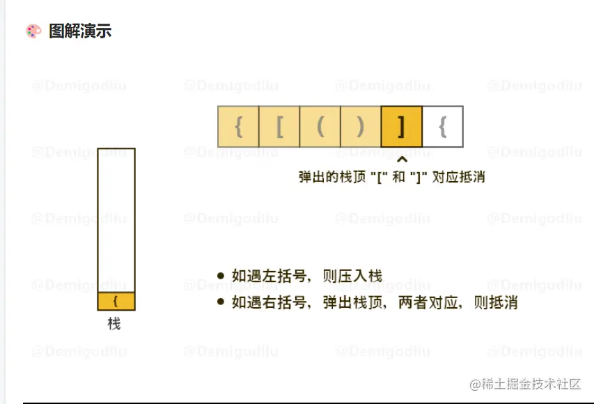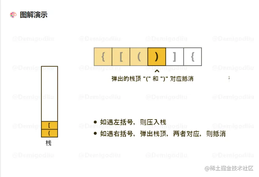 2.如果是右括号,弹出栈顶,两者对应则抵消,如果最后所有括号不能全部抵消则返回false