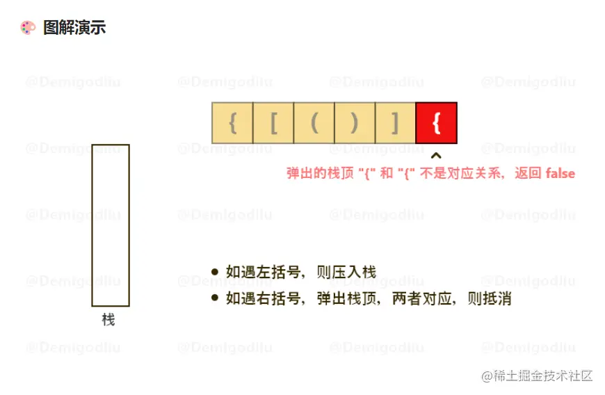3.右括号前面,不是对应的左括号,那么该字符串,一定不是有效的括号