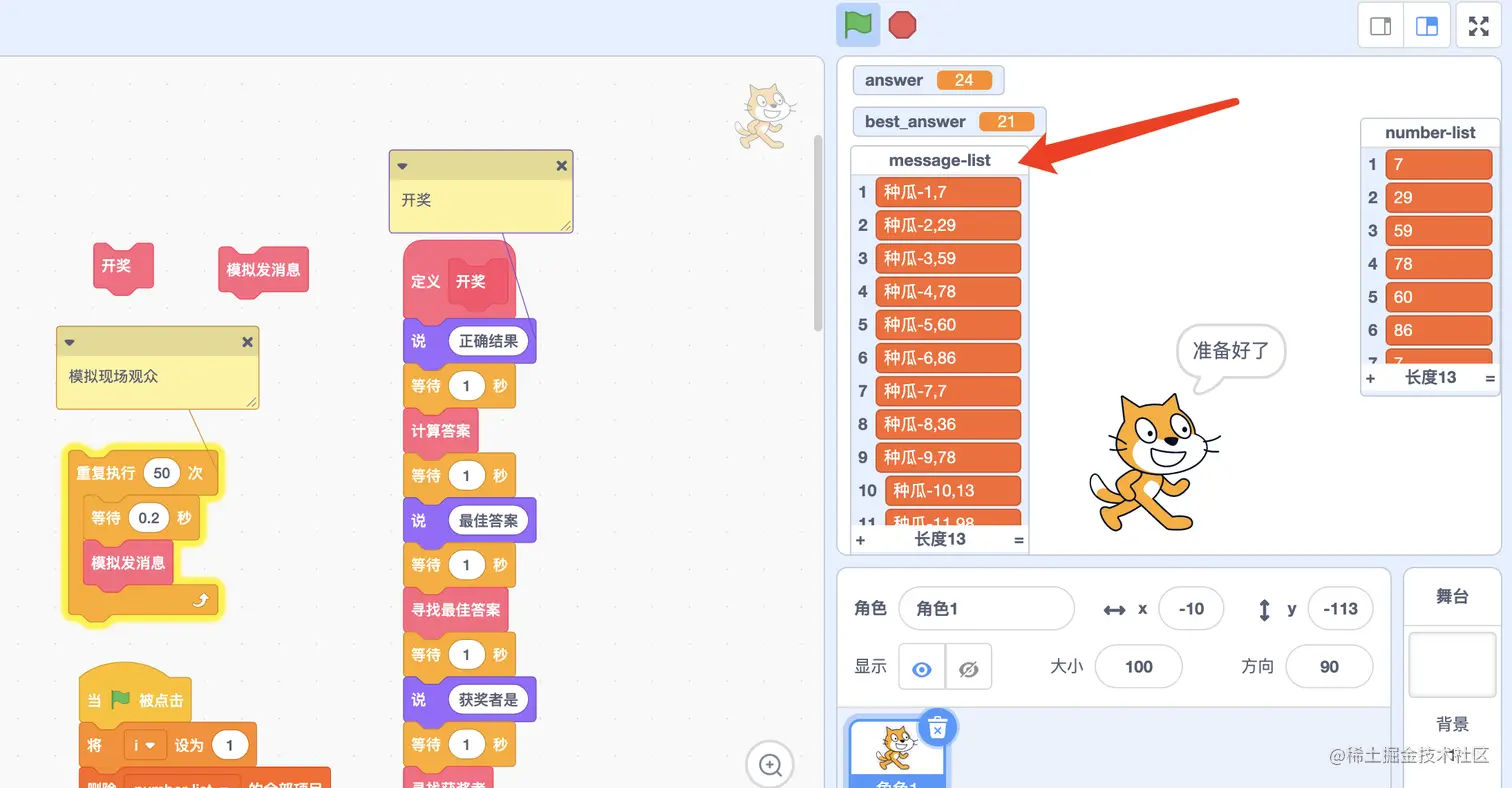 更棒的是,一旦这样做,我只需要完成最小原型,@Caven 和其他参与这个项目的人,就可以迅速加入了,他们可以在 Scratch 里设计出有趣的游戏动画和彩蛋等东西。事实证明,这样做效果好极了,@Caven 甚至在 Scratch 里做了很棒的统计和数据分析!用于游戏开奖环节。