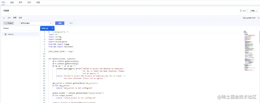下载示例 代 码 ,粘贴至函数的index.py文件中,如图所示。