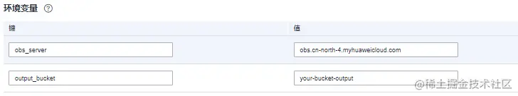 键obs_output_bucket: index.py文件中定义的存放输出图片的OBS桶参数,值your-bucket-output: 创建 OBS 桶 中创建的存放输出图片的OBS桶;