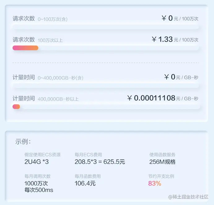 2.函数运行随业务量弹性伸缩,按需付费,当创建的函数没有执行时,不计费。