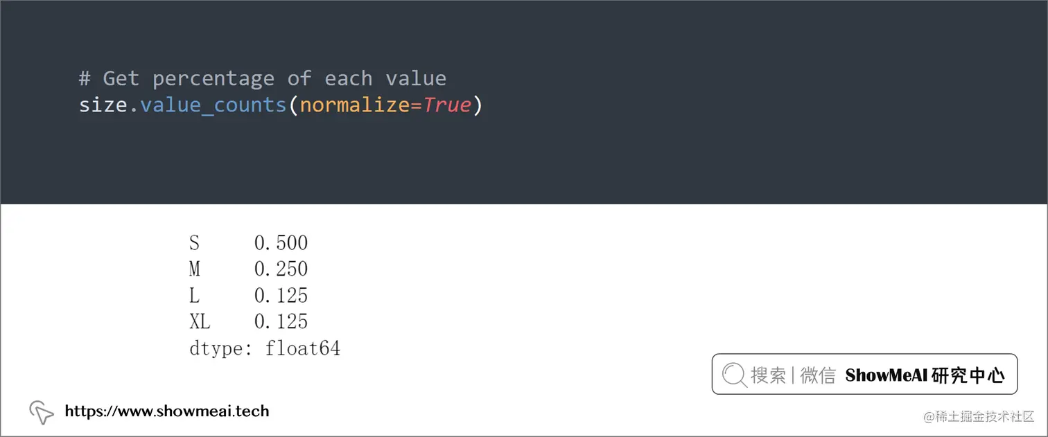 大家都知道,我们可以使用value_counts获取列里的取值计数,但是,如果要获取列中某个值的百分比,我们可以添加normalize=True至value_counts参数设置来完成: