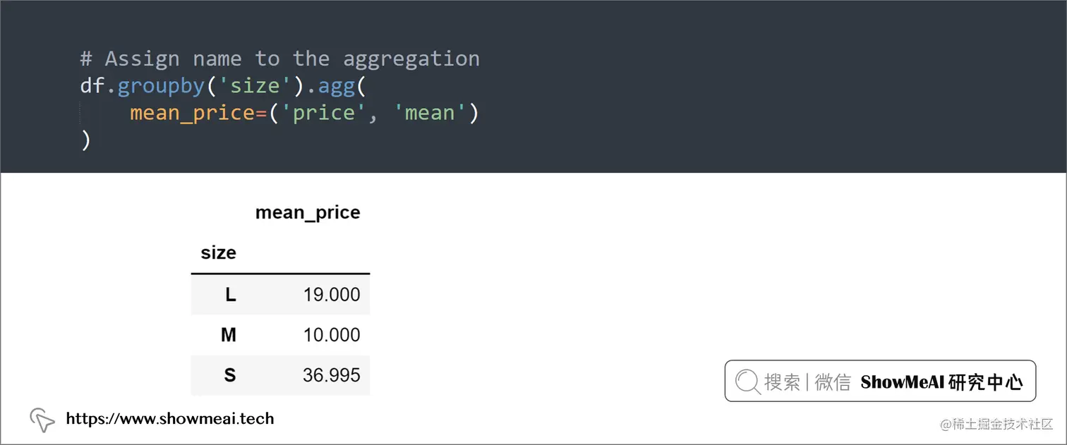 我们经常会使用分组聚合的功能,如果要为聚合分配新名称,可以使用name = (column, agg_method)方法: