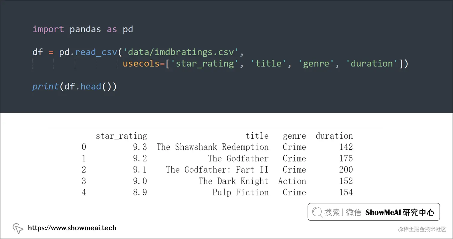 🏆 实战数据集下载(百度网盘):公✦众✦号『ShowMeAI研究中心』回复『实战』,或者点击 这里 获取本文 [65]资深数据科学家整理的21个Pandas技巧 『imdbratings数据集』