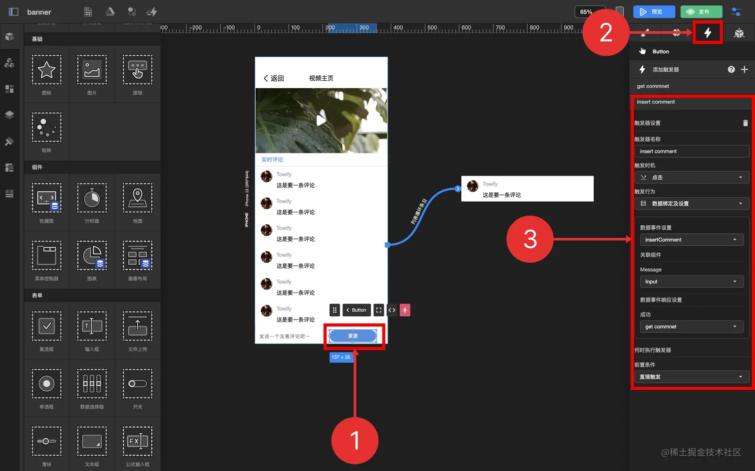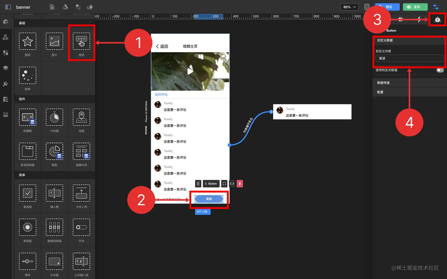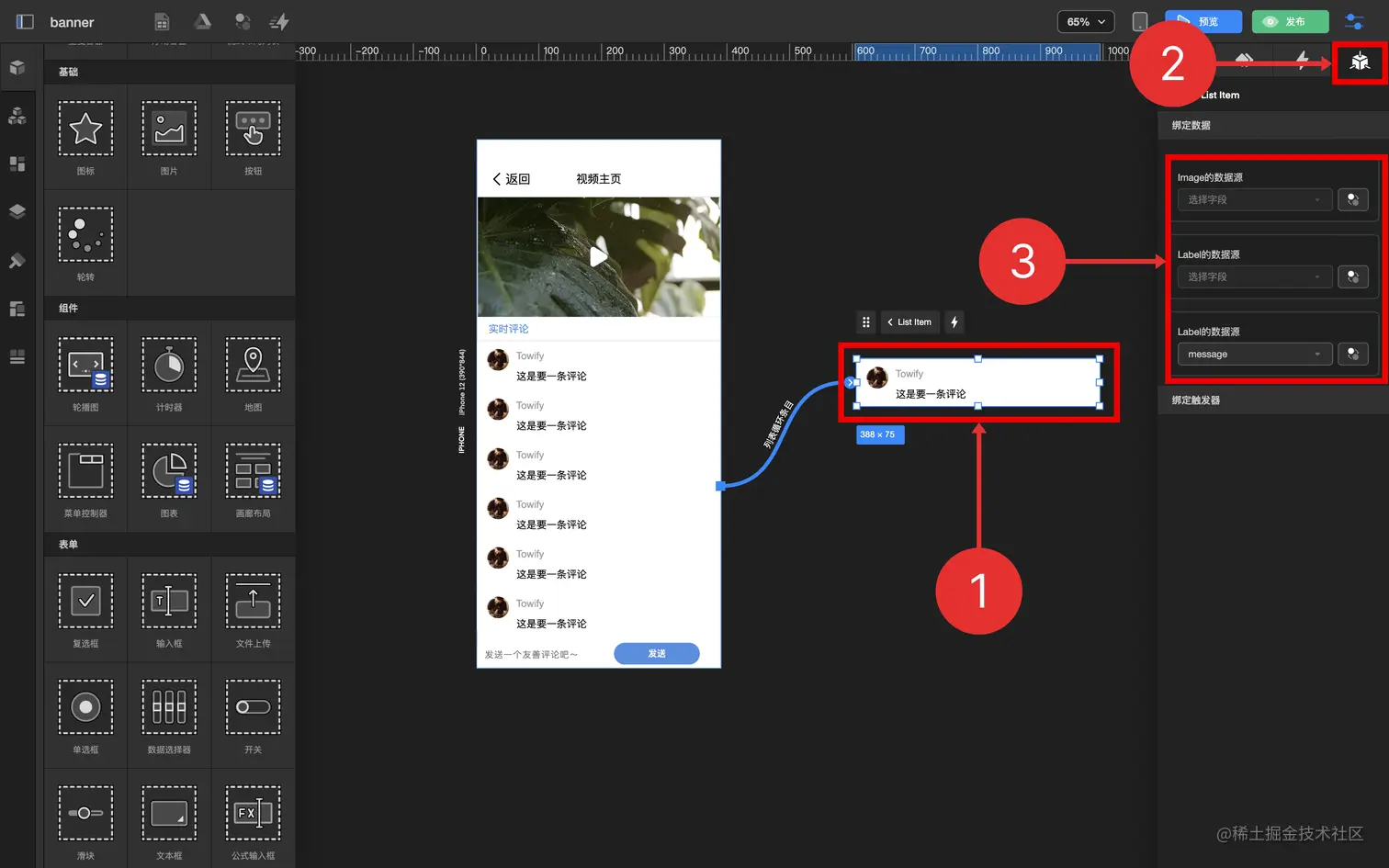 通过循环容器及数据表功能,制作一个发送评论实时显示的功能