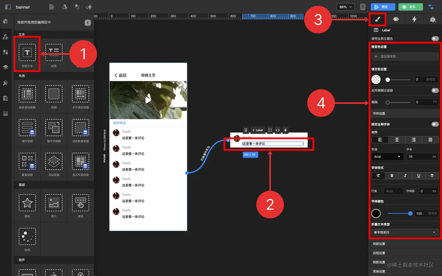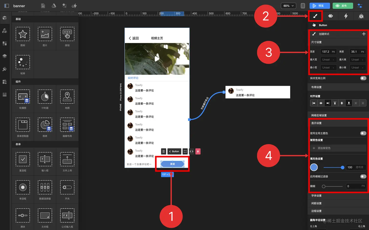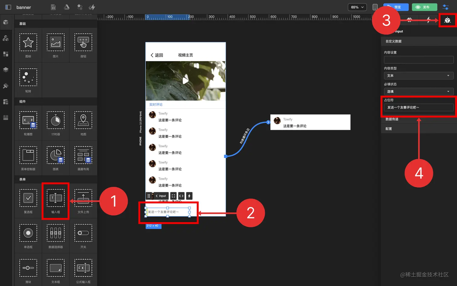 通过循环容器及数据表功能,制作一个发送评论实时显示的功能