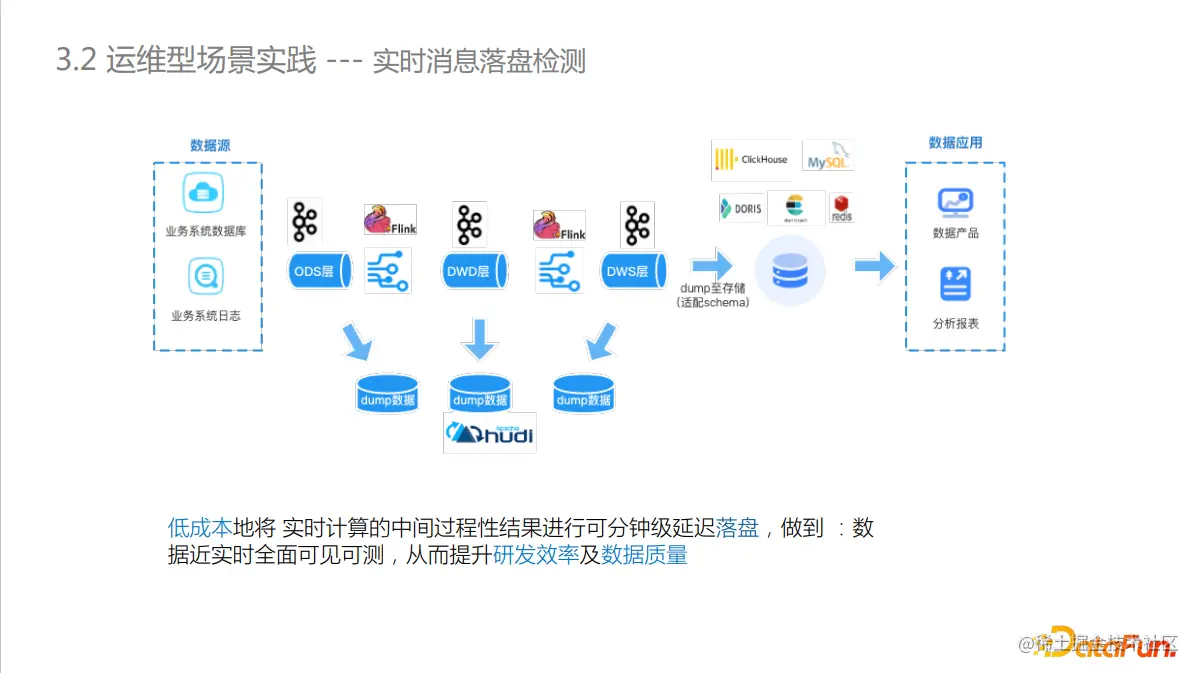 通过CDC将消息队列里的数据落盘到数据湖中,实现中间数据的全面可见、可测,对于提高数据研发同学的效率和数据质量有很大帮助。