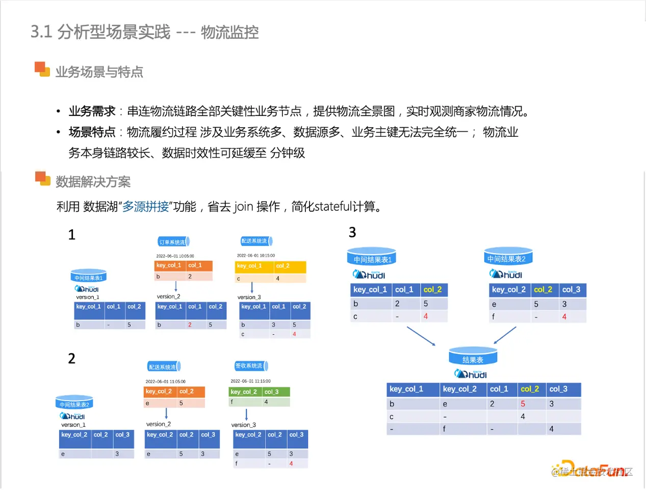 物流监控场景最大的特点是,物流履约的过程中,涉及的业务系统多,数据源多,且没有统一的业务主键。从另一方面来讲,由于物流本身的业务链路比较长,对于数据的观测的时效性不高,可延缓至分钟级。