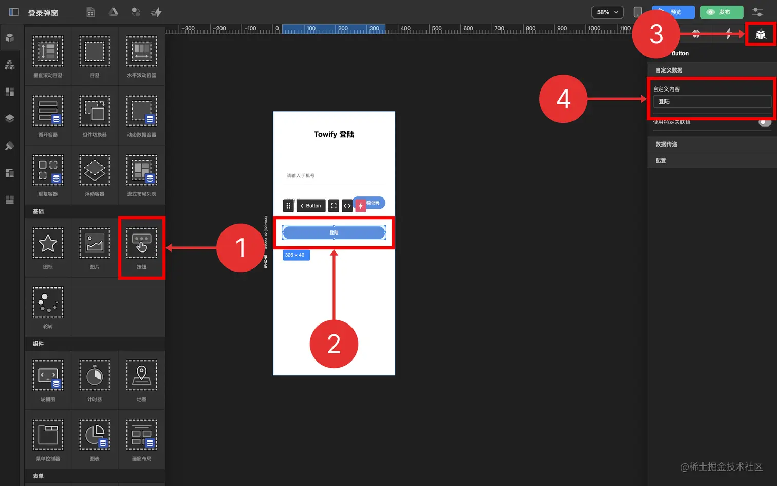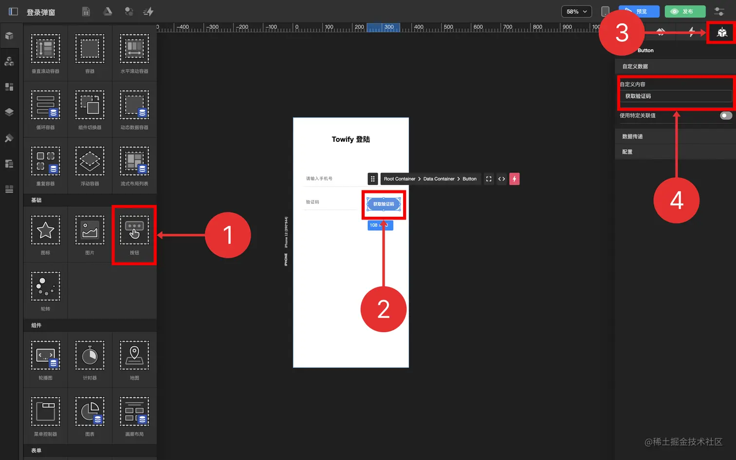 4.1. 拖拽 按钮 到 动态数据容器 中