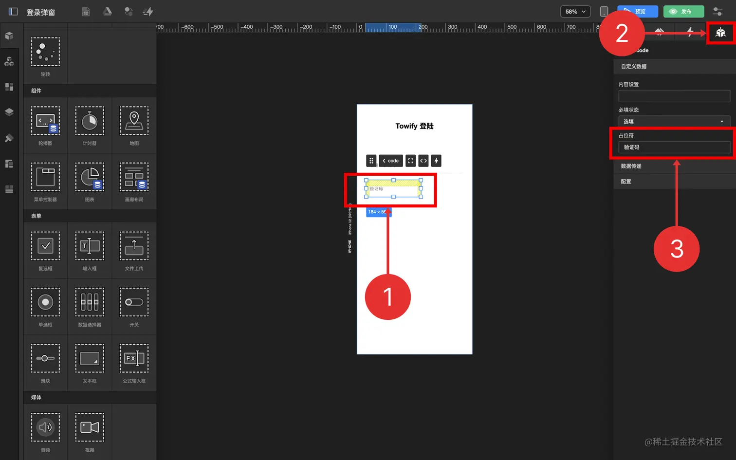 5.4.2 选择接收值组件 检查组件值 “验证码输入框”