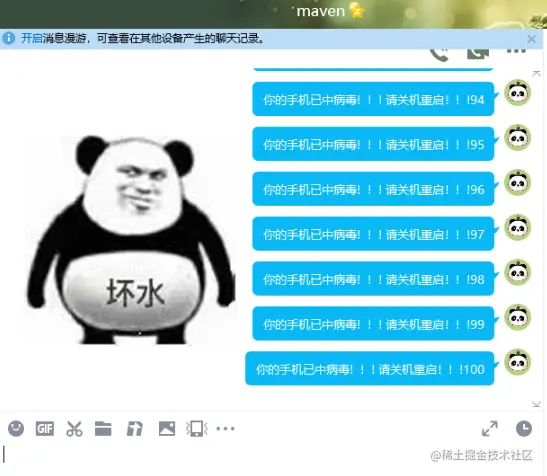 返回桌面,打开好友聊天框。在聊天框内输入你要发送的内容,然后选中,最后双击桌面的那个轰炸信息.vbs。再次点击输入框,就可以发送信息了,最后的效果如图。大家可以去试试。
