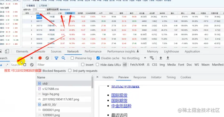3)刷新网页会出现很多数据信息,找到相应要爬取的内容可以通过搜索。