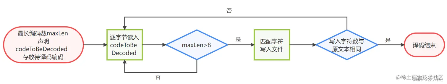 当写入的字符数与原文本字符数相同时,则译码完成,此时再往后读取便是字典的信息。