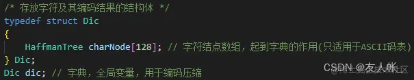 | typedef struct Dic Dic; | 存放字符及其编码结果的结构体 |