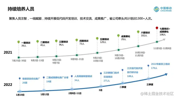 2022年,明道云着力于协助大型企业客户面向组织内部深入推广零代码——从发布《大型组织深入推广零代码应用平台的行动指南》电子书,到正式在广汽本田、北京大兴国际机场、临港集团等公司落地培训,并成功举办两期零代码研修班,培养零代码培训专家。将理论落地实践,再沉淀出赋能课程,步履不停。