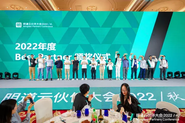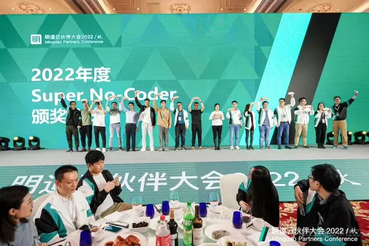 一年以来,明道云见证了不少合作伙伴在商业上的丰收,以及大量零代码极客的成长与蜕变。为了让这些伙伴和极客的付出能得到认可,明道云顾问团队推选出16家“Best Partner”(最佳合作伙伴)和30位“Super No-Coder”,在伙伴大会晚宴举办现场颁奖仪式。