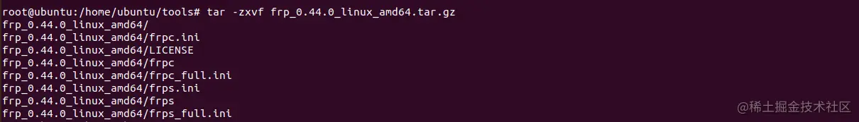 tar -zxvf frp_0.44.0_linux_amd64.tar.gz