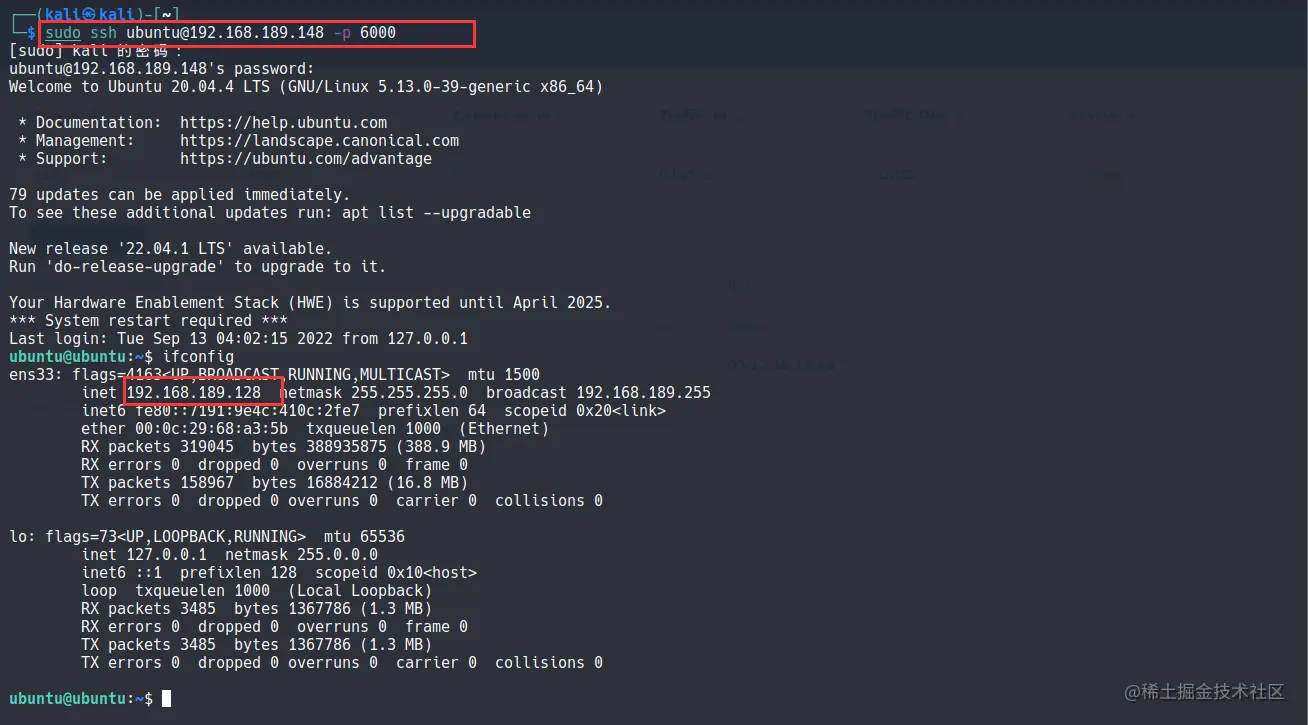 sudo ssh ubuntu@192.168.189.148 -p 6000