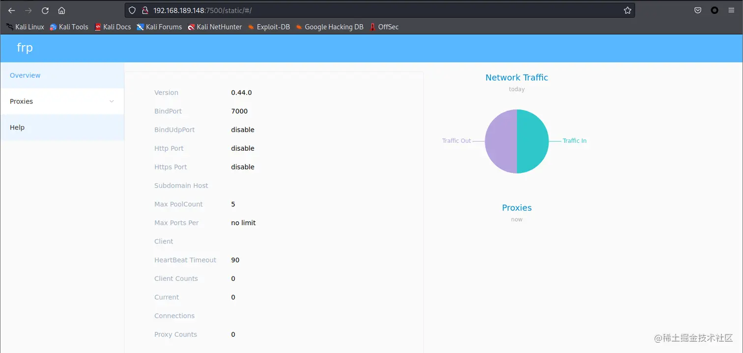 2、在代理模块可以看到已经代理了靶机的SSH服务