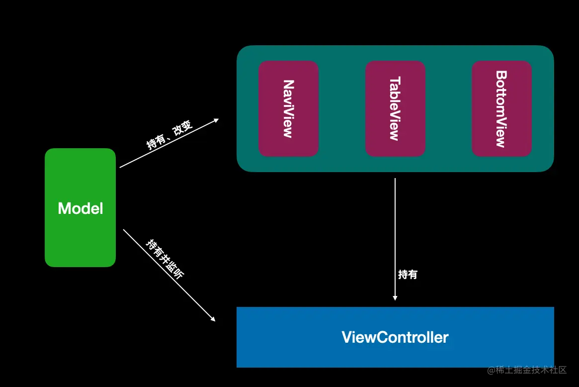 - 一个 ViewController 持有 TableView,NaviView,BottomView