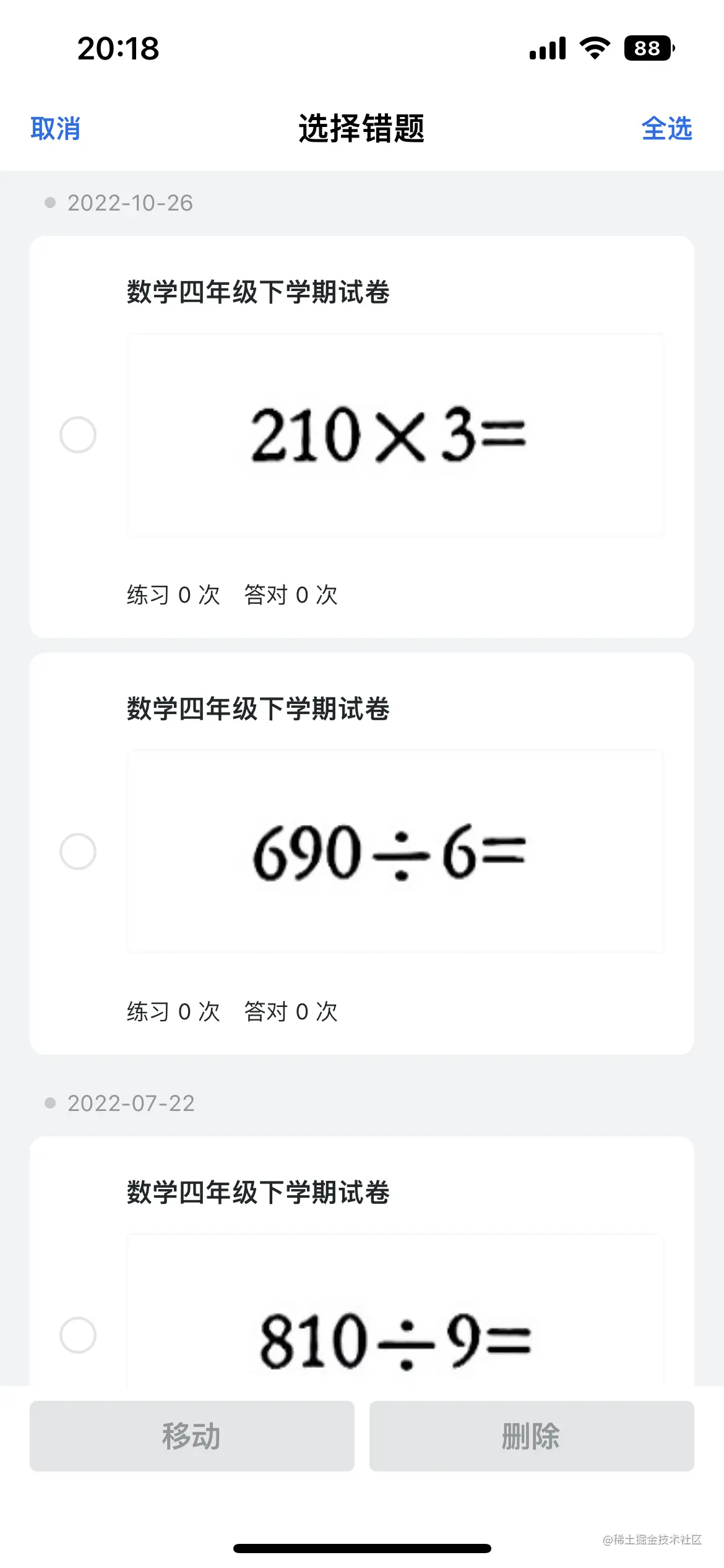 根据选中个数,顶部导航栏展示全选和取消全选,底部按钮展示是否可点击和数字