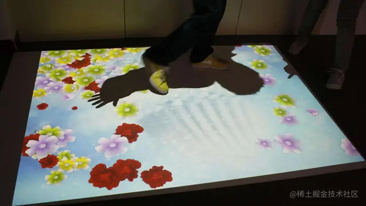 地面互动投影是通过悬挂在顶部的投影设备把内容投射到地面,当用户进入投影区域时,在捕捉设备的作用下,对用户行为进行数据分析,产生不同的效果,为用户提供新奇的互动体验,还能活跃场所氛围。