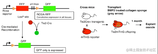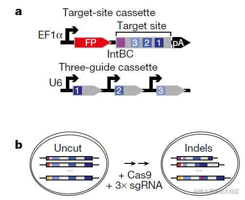2014年cell文章“Identification and Specification of the Mouse Skeletal Stem Cell”利用谱系示踪小鼠追踪到了骨骼发育的小鼠骨骼干细胞。2018年cell文章“Identification of the Human Skeletal Stem Cell”利用单细胞测序和谱系示踪技术配合鉴定出了人的骨骼干细胞。由于常规谱系示踪只能同时标记一两个marker基因,限制了多谱系分化示踪的应用。2019年的nature文章“Molecular recording of mammalian embryogenesis”利用crispr-cas9和单细胞测序技术开发了基于条形码的谱系示踪技术,扩展了常规谱系示踪技术的应用。