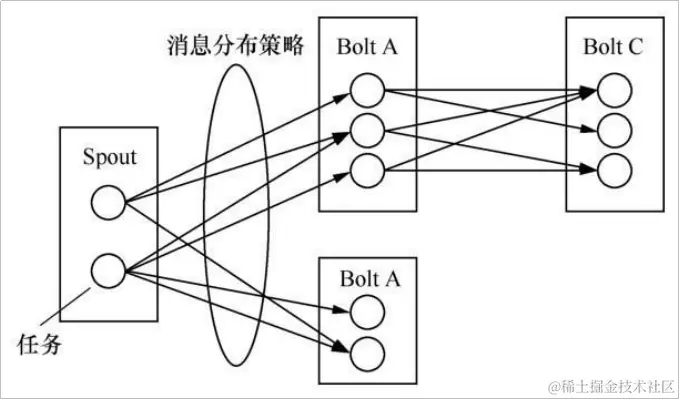 图 1 基本的 Storm 实时处理系统拓扑结构