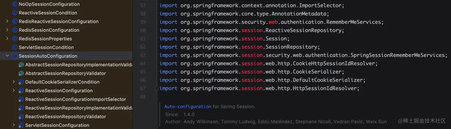 在看到 SessionAutoConfiguration里面代码同时发现spring-security相关依赖代码发生了改变。