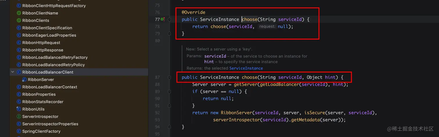 而我们由于为了继续使用spring-cloud-netflix-ribbon包,引入的只能是更新到2021年的最新版本2.2.10.RELEASE,这个包最后更新时间是 2021年11月份,所以这里面实现的仍然是老的choose方法。
