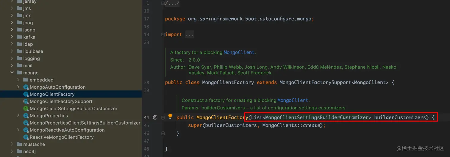 spring-boot-autoconfigure新版本下MongoClientFactory构造函数发生改变,以前的写法发生编译错误。