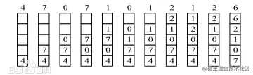 (4)引用页面7时,命中了,7是最近被访问的,放在栈顶;