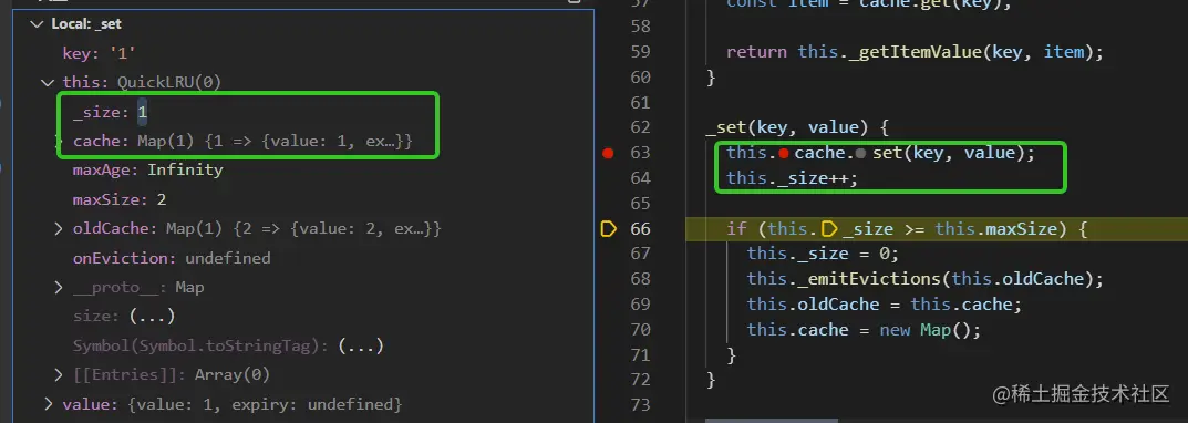 执行_set时, cache执行set,参数key为foo,值为由value和expiry组成的对象,_size加1.