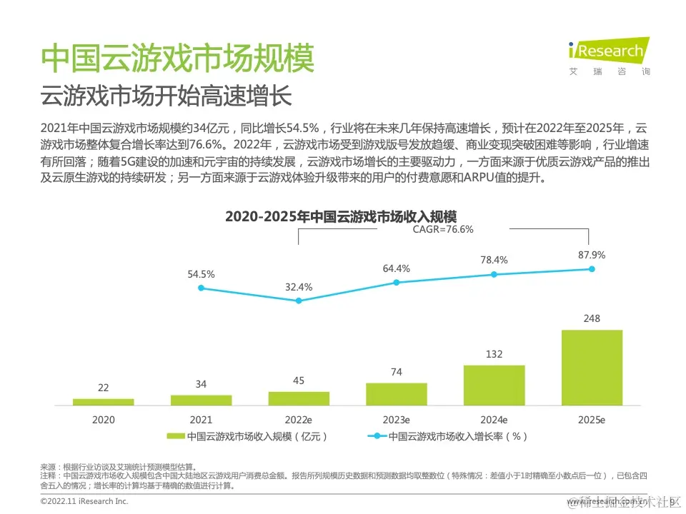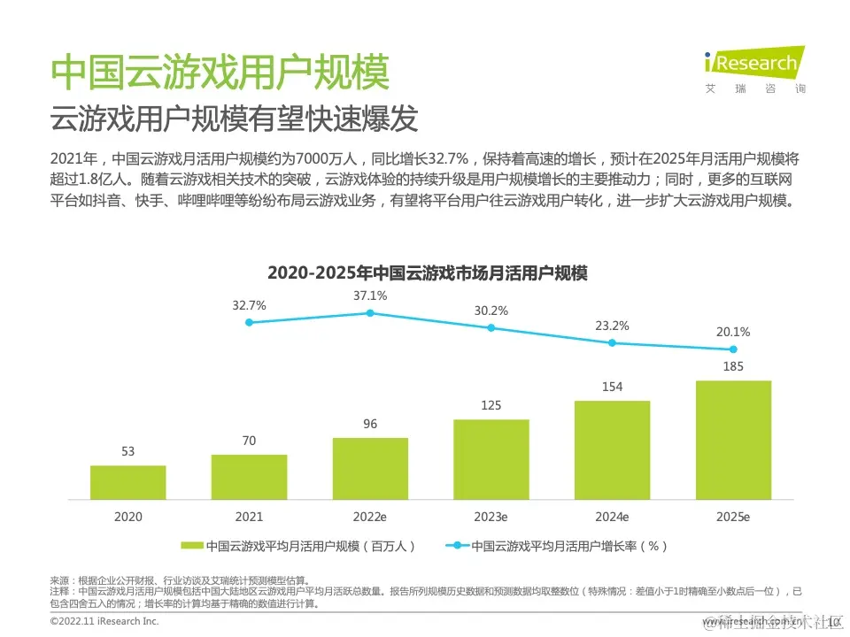 近日,第三方研究机构艾瑞咨询发布《2022中国云游戏行业研究报告》(以下简称《报告》)。