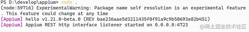 编译后 Appium Server 的启动日志会发生改变: