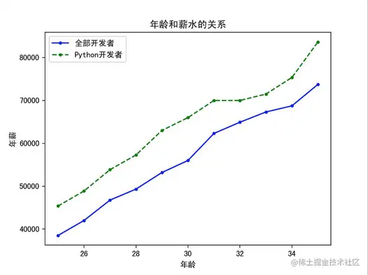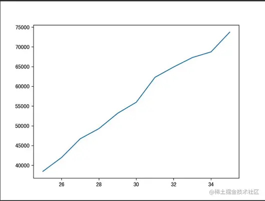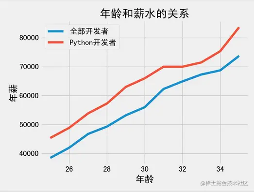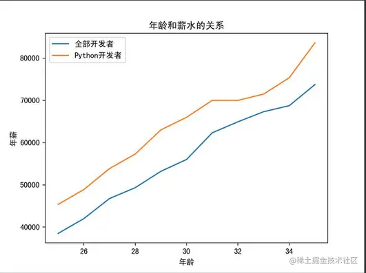plt.plot(ages_x, py_dev_y, label="Python开发者")